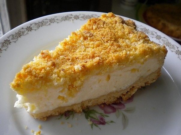 На крошку выливаем творожную массу.