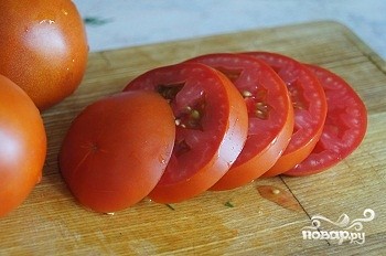 Порезать помидоры кольцами.