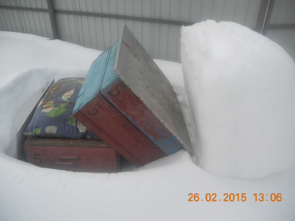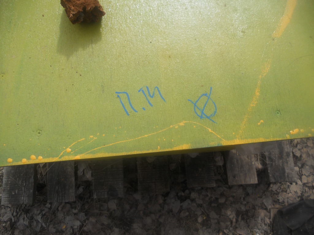 А снега, конечно, покидать пришлось хорошо. На одном улье снег как-то сумел перевернуть крышу с подкрышником. Похоже незадолго до моего прихода. Съехал по теплу и перетянул крышечку. Хорошо, подушка не свалилась. Пчёлки не обиделись вроде.