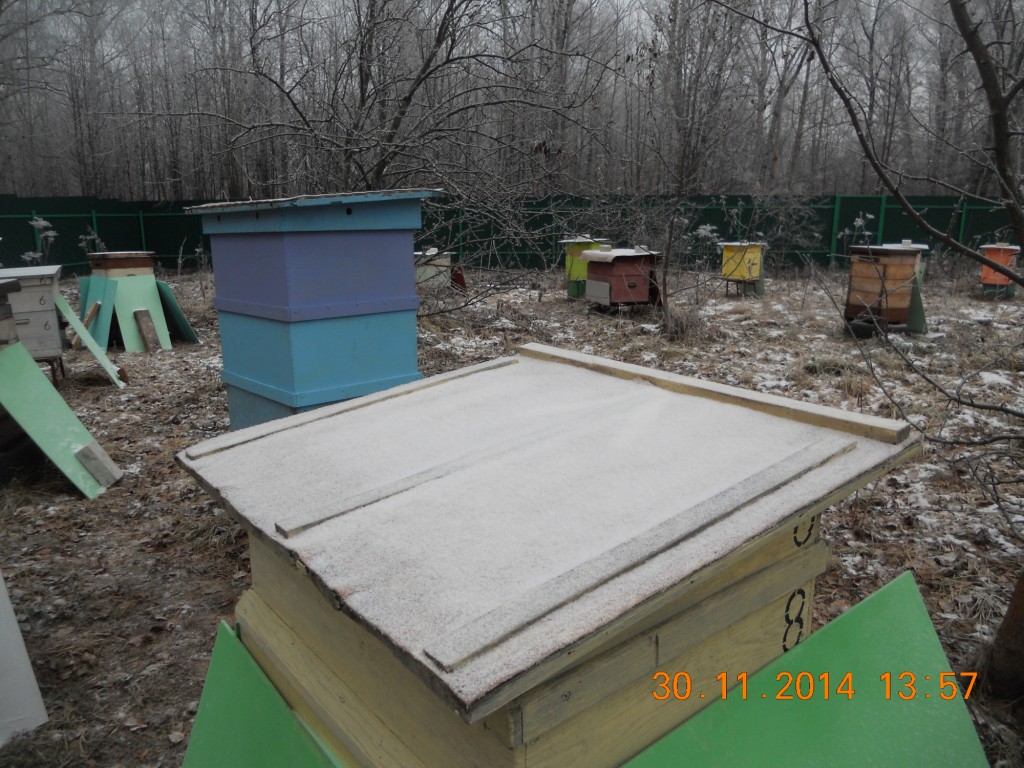 Да, да - так и есть. Вот например на фото ульи с номерами 1, 3, 4, .. - там на больших семьях сидят отдельно в маленьких улейках отводки. Им снизу тепленько от сильных - зимуют превосходно. Весной станут хорошими семьями.