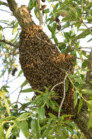 А вот рой, вылетевший из улья и привившийся в близи пасеки. Он ждет, когда вернутся высланные на разведку пчелы и сообщат о приемлемом новом месте обитания...