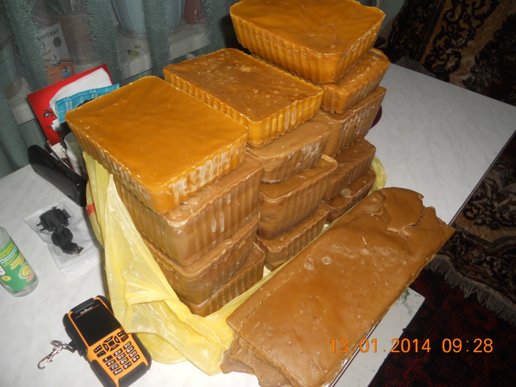 Прошлогодние вот есть. Это первая перетопка, черновая.