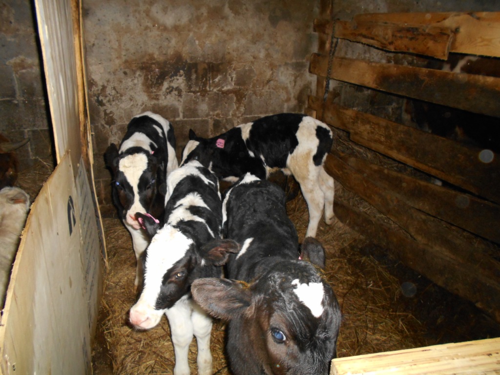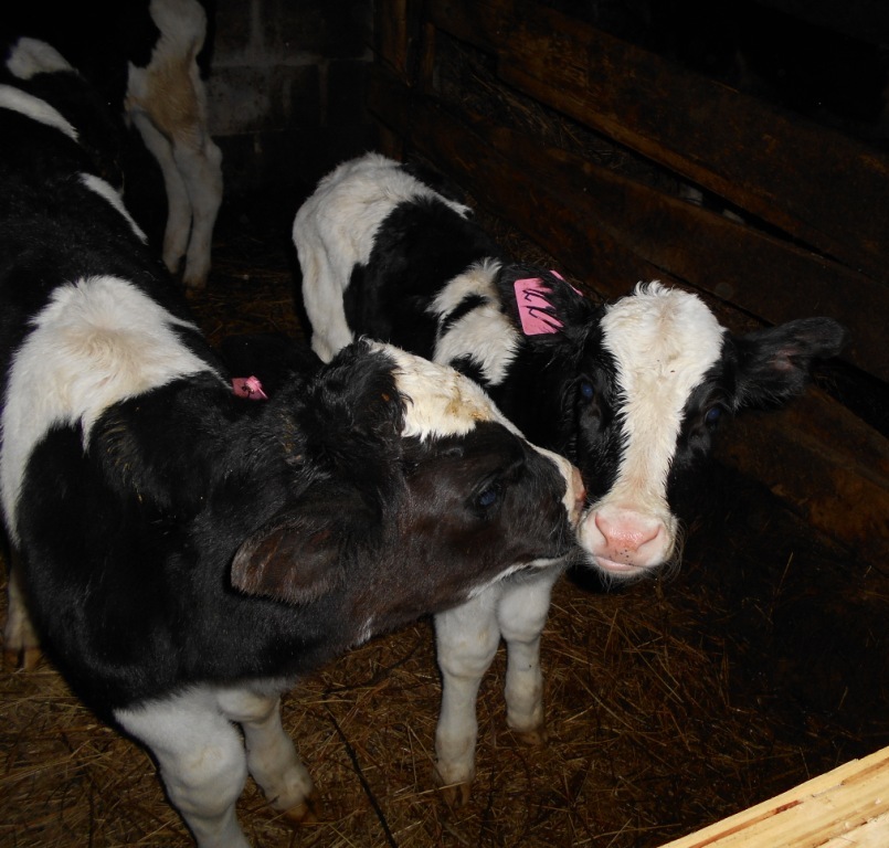 А вот телочки. Отличные телки.. Колхоз скажу тому кто захочет там бычка взять. Шустрые .. живые и вес больше 40 кг.. пятидневки.. А тут я сама их загубила .. Т.к. бычки были с инфекцией. Загоны рядом. Да практически с одном помещение. Болячки переползли.. Врач поздно подобрал лекарство. Но одну спасла.. купив зцм Голландского производства(Евролак). Растворяемость зцм полная. Молоко прям хоть сама пей. Но пока выпаиваю наполовину с пакетным молоком. Поноса нет.. ТТТ.