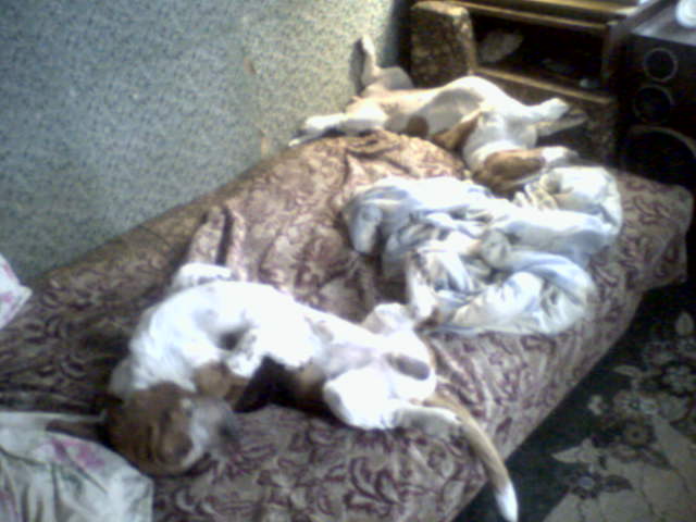 Ай какая фоточка... коллюшка стоеухая тоже есть.... Как-то хотелось мне бассета, но знакомая заводчица рассказала, что замок на холодильник вешает, иначе сами умеют открывать
