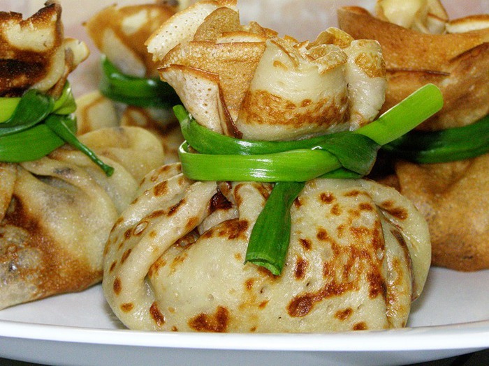 1. Блины с начинкой из яиц Состав: 4 яйца, 50 гр. зеленого лука, 5-10 гр. укропа, соль. Отварить 4 яйца. Натереть вареные яйца на терку. Обжарить зеленый лук 50 гр. Укроп 5-10 гр. Соль по вкусу.