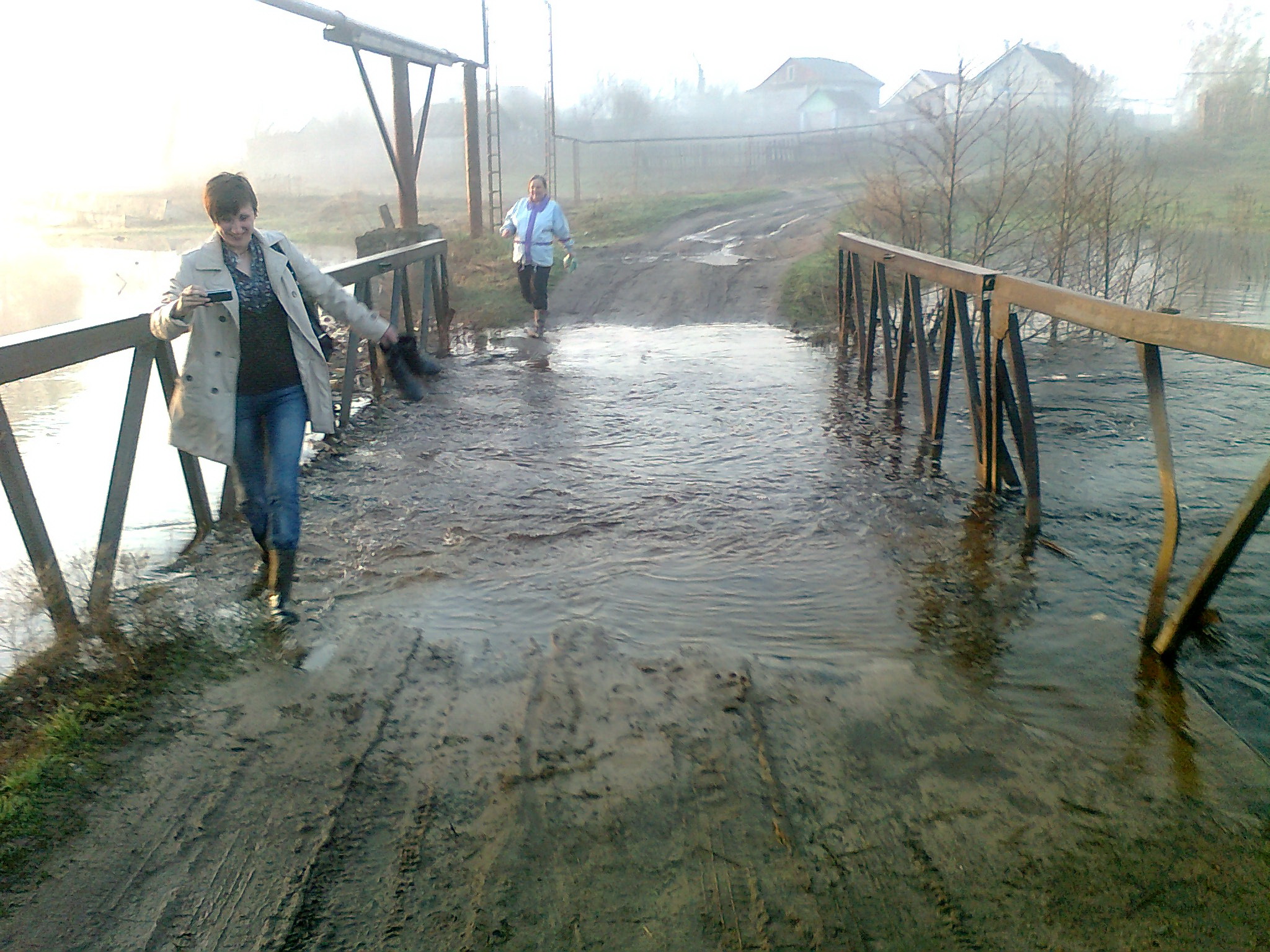 В такое время мы по мосту не ездим, жалеем, он у нас один, и тот дырявый, каждое половодье смывает кусок моста в реку, а летом самые глубокие места по пояс, даже коровам до брюха не достаёт.