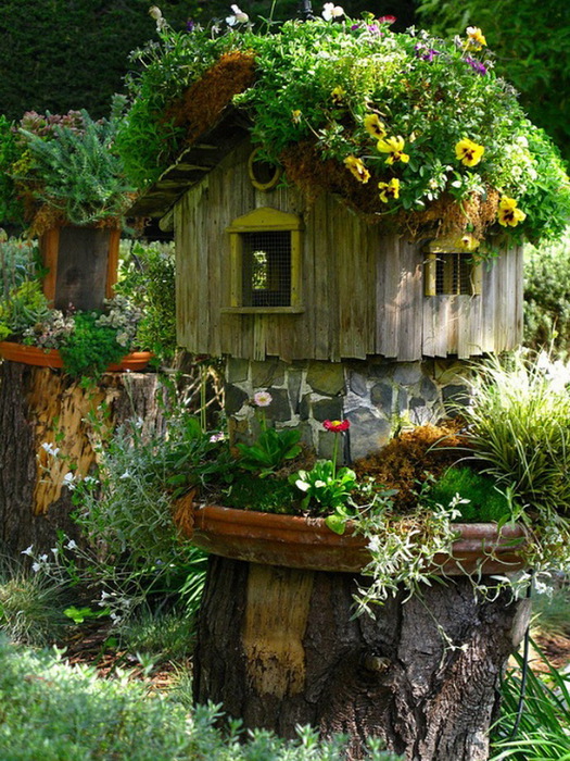 Инна, я бы с боков сделала что то по типу балкончиков и туда травку насажала. Обычную травку, которая под ногами, можно пару семян цветочков бросить. Был бы интересен такой дизайн. Или внизу площадку и выложить дерном ее. Чтоб не засохла нужно что то вроде полиэтилена внизу .