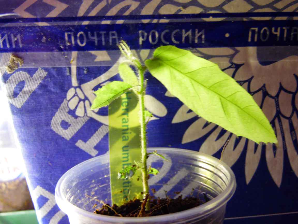 терминалия катаппа из семян. Можно посмотреть как раскрываются семядоли и какие они стали.